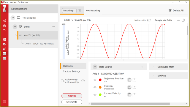 Zaber Motion Library. The Oscilloscope can be used to